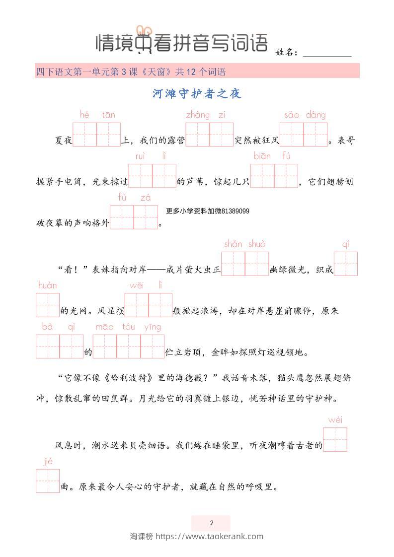 【情境中看拼音写词语】四下语文taoke5个月前发布关注486【情境中看拼音写词语】四下语文此内容为付费资源,请付费后查看9.919.9月VIP免费永久VIP免费立即购买您当前未登录!建议登陆后购买,可保存购买订单格式pdf页数33 页大小961.87 KB付费资源 ——预览已结束,还剩31页未读——开通会员后可免费下载高清完整文档 © 版权声明文章版权归作者所有,未经允许请勿转载。THE END小学语文 喜欢就支持一下吧点赞6收藏