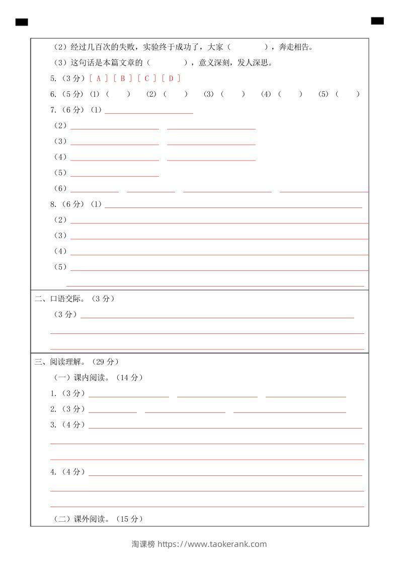 四下语文第一次月考(第一二单元)(答题卡)taoke5个月前发布关注8614四下语文第一次月考(第一二单元)(答题卡)此内容为付费资源,请付费后查看9.919.9月VIP免费永久VIP免费立即购买您当前未登录!建议登陆后购买,可保存购买订单格式pdf页数5 页大小1.03 MB付费资源 ——预览已结束,还剩3页未读——开通会员后可免费下载高清完整文档 © 版权声明文章版权归作者所有,未经允许请勿转载。THE END小学语文 喜欢就支持一下吧点赞14收藏
