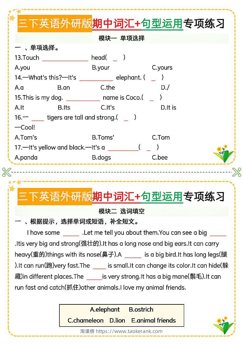 三下英语外研版期中词汇+句型运用专项taoke5个月前发布关注4612三下英语外研版期中词汇+句型运用专项此内容为付费资源,请付费后查看9.919.9月VIP免费永久VIP免费立即购买您当前未登录!建议登陆后购买,可保存购买订单格式pdf页数16 页大小8.54 MB付费资源 ——预览已结束,还剩14页未读——开通会员后可免费下载高清完整文档 © 版权声明文章版权归作者所有,未经允许请勿转载。THE END小学英语 喜欢就支持一下吧点赞12收藏