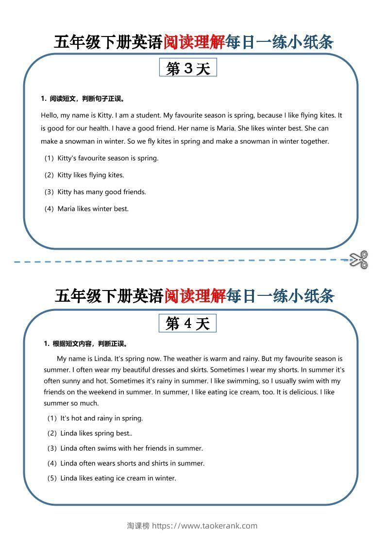 五下英语-阅读理解每日一练小纸条taoke4个月前发布关注536五下英语-阅读理解每日一练小纸条此内容为付费资源,请付费后查看9.919.9月VIP免费永久VIP免费立即购买您当前未登录!建议登陆后购买,可保存购买订单格式pdf页数14 页大小440.19 KB付费资源 ——预览已结束,还剩12页未读——开通会员后可免费下载高清完整文档 © 版权声明文章版权归作者所有,未经允许请勿转载。THE END小学英语 喜欢就支持一下吧点赞6收藏