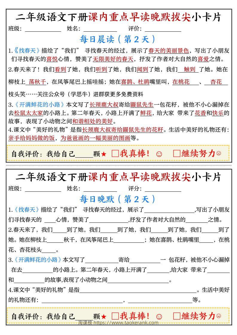 二下语文期末复习课内重点早读晚默拔尖小卡片15页taoke4个月前发布关注6911二下语文期末复习课内重点早读晚默拔尖小卡片15页此内容为付费资源,请付费后查看9.919.9月VIP免费永久VIP免费立即购买您当前未登录!建议登陆后购买,可保存购买订单格式pdf页数14 页大小697.42 KB付费资源 ——预览已结束,还剩12页未读——开通会员后可免费下载高清完整文档 © 版权声明文章版权归作者所有,未经允许请勿转载。THE END小学语文 喜欢就支持一下吧点赞11收藏