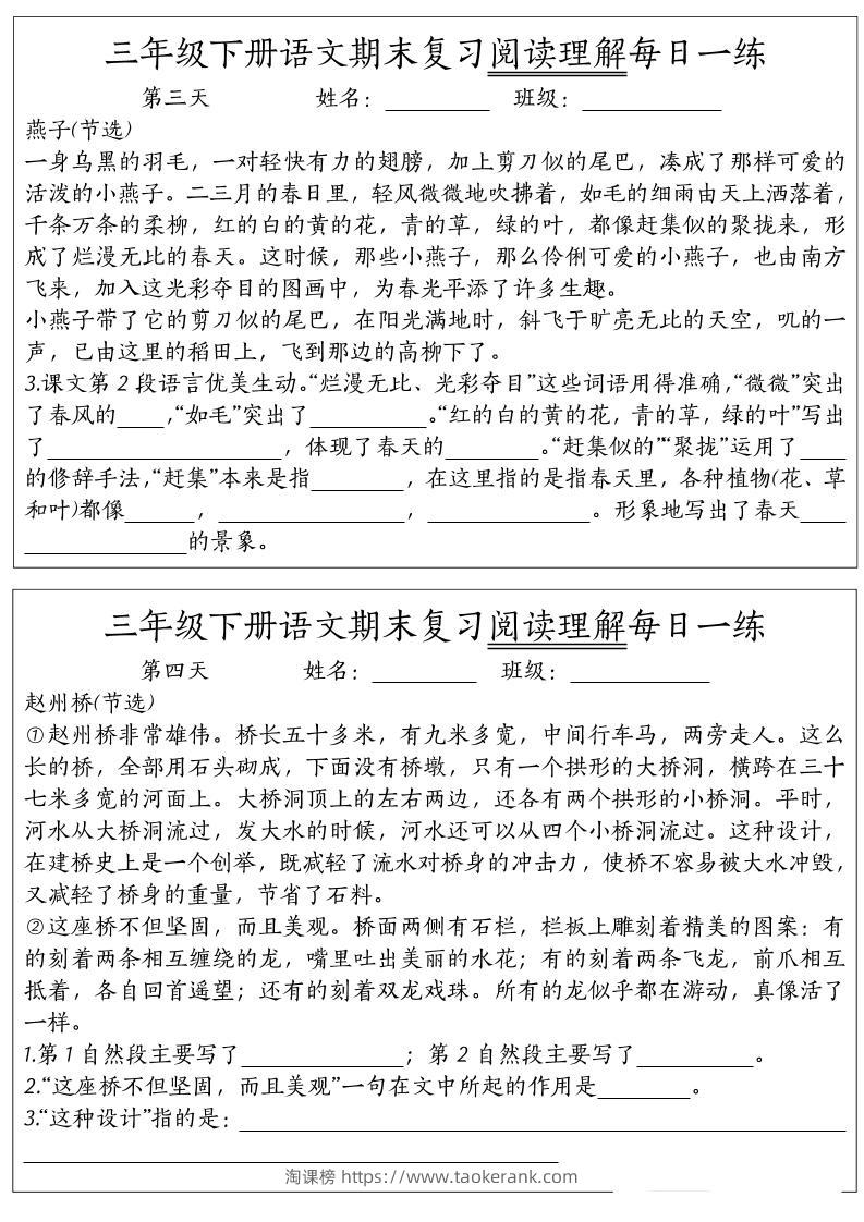 期末复习阅读理解每日一练三下语文taoke4个月前发布关注387期末复习阅读理解每日一练三下语文此内容为付费资源,请付费后查看9.919.9月VIP免费永久VIP免费立即购买您当前未登录!建议登陆后购买,可保存购买订单格式pdf页数16 页大小947.54 KB付费资源 ——预览已结束,还剩14页未读——开通会员后可免费下载高清完整文档 © 版权声明文章版权归作者所有,未经允许请勿转载。THE END小学语文 喜欢就支持一下吧点赞7收藏
