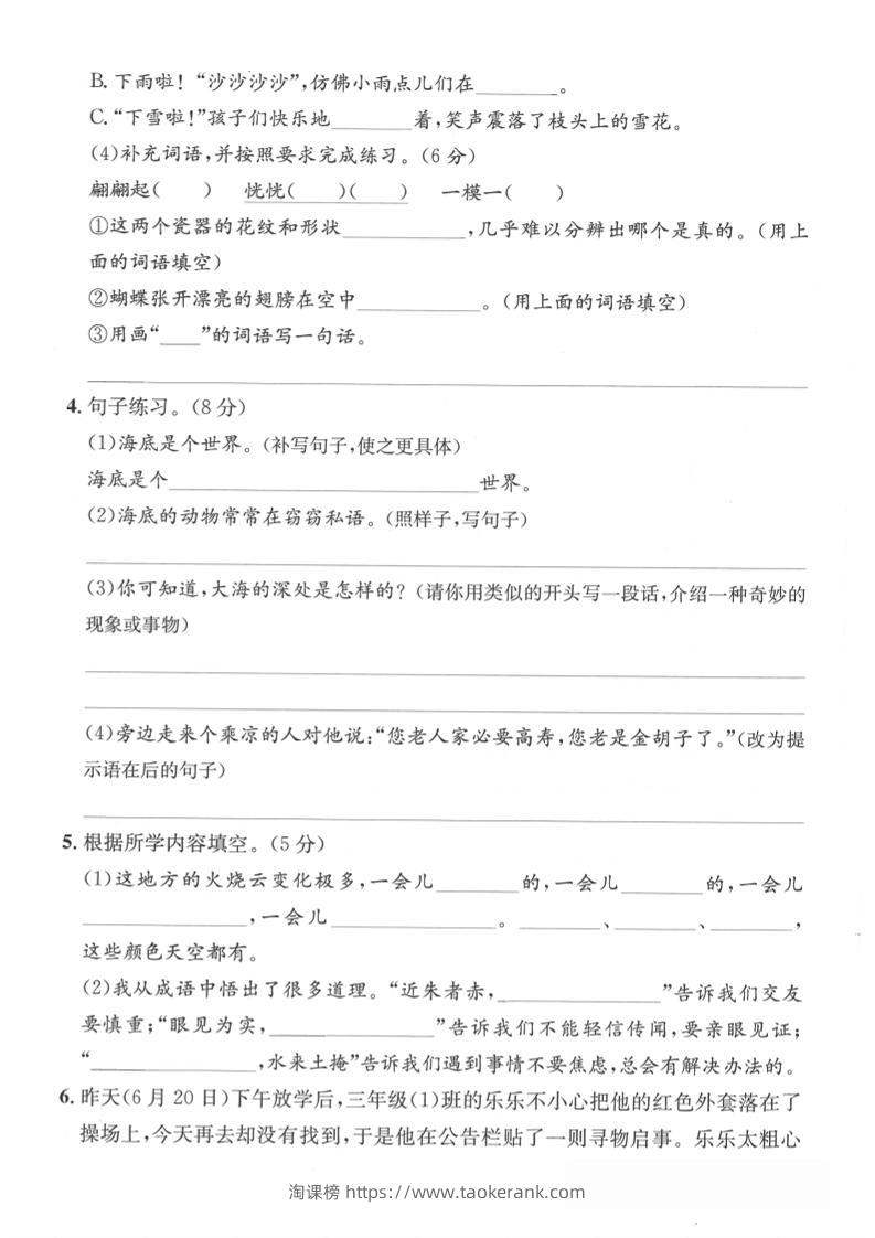 三下语文第七单元拔尖测试卷2(含答案5页)taoke4个月前发布关注386三下语文第七单元拔尖测试卷2(含答案5页)此内容为付费资源,请付费后查看9.919.9月VIP免费永久VIP免费立即购买您当前未登录!建议登陆后购买,可保存购买订单格式pdf页数5 页大小2.18 MB付费资源 ——预览已结束,还剩3页未读——开通会员后可免费下载高清完整文档 © 版权声明文章版权归作者所有,未经允许请勿转载。THE END小学语文 喜欢就支持一下吧点赞6收藏