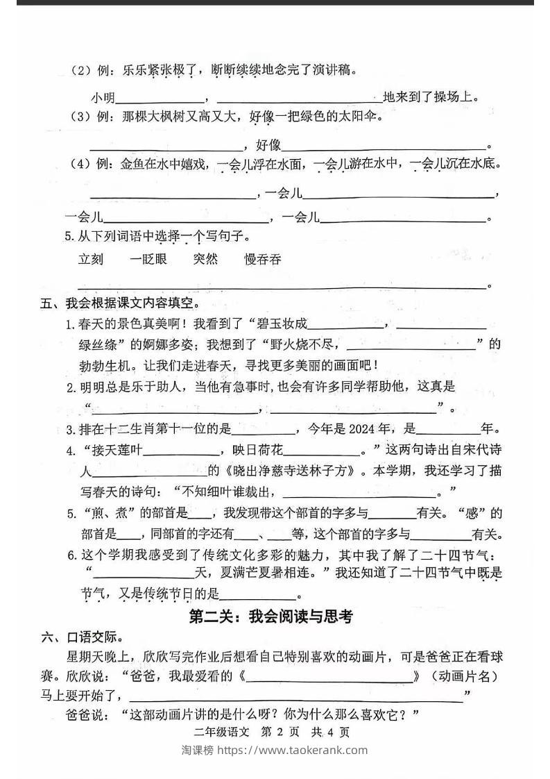 二下语文期末拔尖测试卷4taoke3个月前发布关注2815二下语文期末拔尖测试卷4此内容为付费资源,请付费后查看9.919.9月VIP免费永久VIP免费立即购买您当前未登录!建议登陆后购买,可保存购买订单格式pdf页数4 页大小1.34 MB付费资源 ——预览已结束,还剩2页未读——开通会员后可免费下载高清完整文档 © 版权声明文章版权归作者所有,未经允许请勿转载。THE END小学语文 喜欢就支持一下吧点赞15收藏