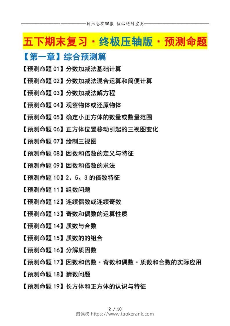 五年级数学期末复习·终极压轴版(原卷版)人教版taoke3个月前发布关注429五年级数学期末复习·终极压轴版(原卷版)人教版此内容为付费资源,请付费后查看9.919.9月VIP免费永久VIP免费立即购买您当前未登录!建议登陆后购买,可保存购买订单格式pdf页数30 页大小3.45 MB付费资源 ——预览已结束,还剩28页未读——开通会员后可免费下载高清完整文档 © 版权声明文章版权归作者所有,未经允许请勿转载。THE END小学数学 喜欢就支持一下吧点赞9收藏
