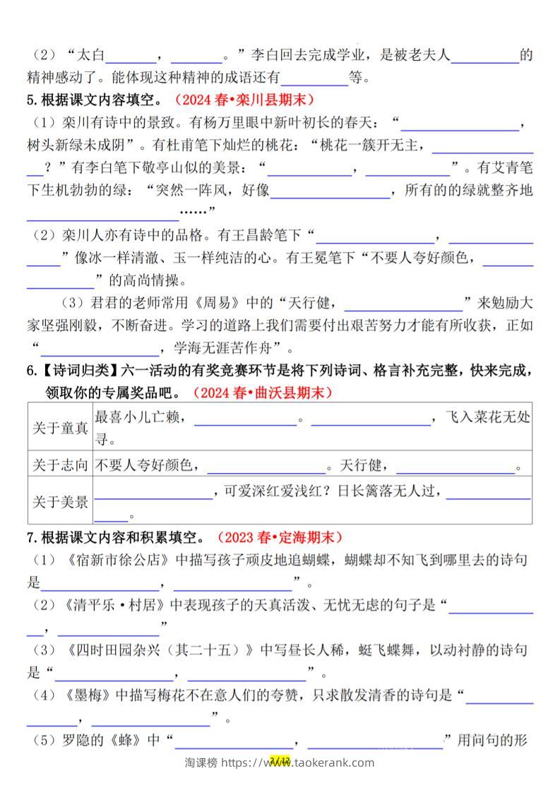 四下语文期末课文、古诗情景默写专练空白taoke3个月前发布关注516四下语文期末课文、古诗情景默写专练空白此内容为付费资源,请付费后查看9.919.9月VIP免费永久VIP免费立即购买您当前未登录!建议登陆后购买,可保存购买订单格式pdf页数12 页大小8.49 MB付费资源 ——预览已结束,还剩10页未读——开通会员后可免费下载高清完整文档 © 版权声明文章版权归作者所有,未经允许请勿转载。THE END小学语文 喜欢就支持一下吧点赞6收藏