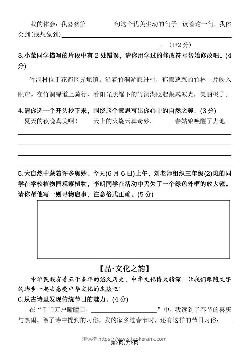 25学年三下语文期末真题情景卷二(含答案8页)taoke3个月前发布关注42625学年三下语文期末真题情景卷二(含答案8页)此内容为付费资源,请付费后查看9.919.9月VIP免费永久VIP免费立即购买您当前未登录!建议登陆后购买,可保存购买订单格式pdf页数8 页大小611.37 KB付费资源 ——预览已结束,还剩6页未读——开通会员后可免费下载高清完整文档 © 版权声明文章版权归作者所有,未经允许请勿转载。THE END小学语文 喜欢就支持一下吧点赞6收藏
