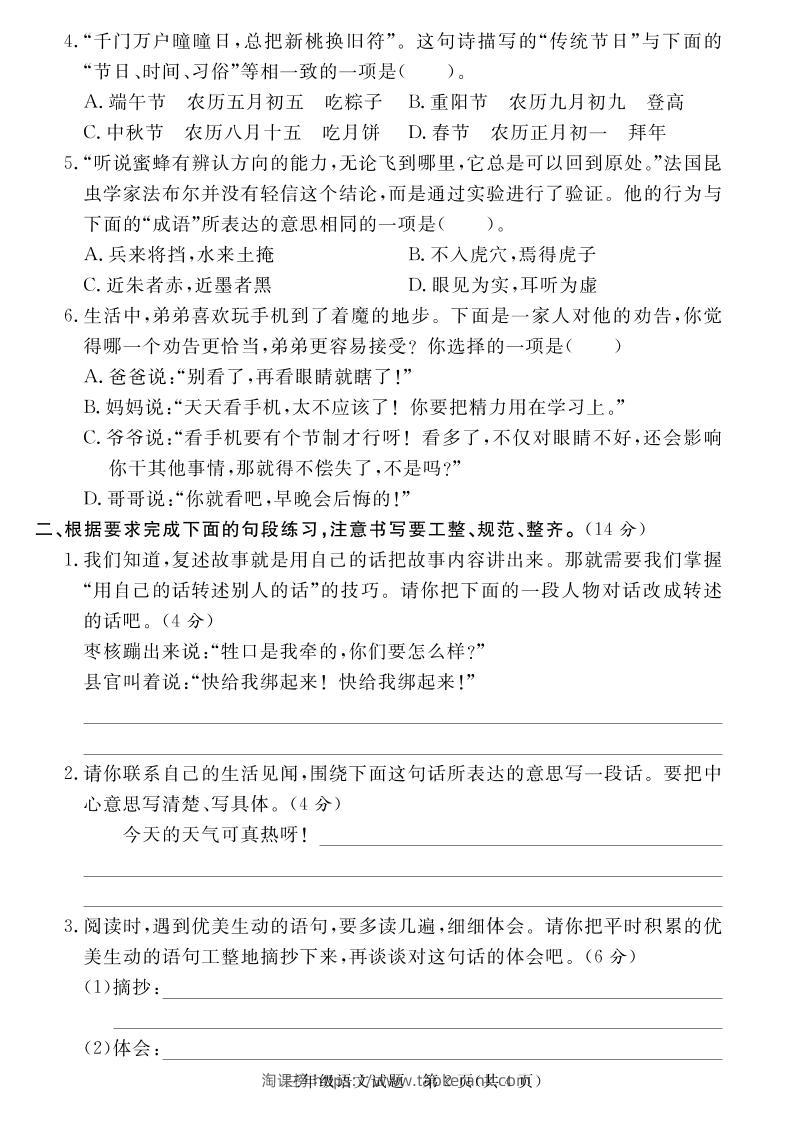 三下语文期末学情调研测试卷4taoke3个月前发布关注5410三下语文期末学情调研测试卷4此内容为付费资源,请付费后查看9.919.9月VIP免费永久VIP免费立即购买您当前未登录!建议登陆后购买,可保存购买订单格式pdf页数5 页大小908.50 KB付费资源 ——预览已结束,还剩3页未读——开通会员后可免费下载高清完整文档 © 版权声明文章版权归作者所有,未经允许请勿转载。THE END小学语文 喜欢就支持一下吧点赞10收藏