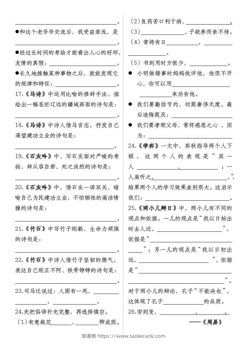 【期末古诗情境默写】六下语文taoke3个月前发布关注408【期末古诗情境默写】六下语文此内容为付费资源,请付费后查看9.919.9月VIP免费永久VIP免费立即购买您当前未登录!建议登陆后购买,可保存购买订单格式pdf页数9 页大小392.90 KB付费资源 ——预览已结束,还剩7页未读——开通会员后可免费下载高清完整文档 © 版权声明文章版权归作者所有,未经允许请勿转载。THE END小学语文 喜欢就支持一下吧点赞8收藏