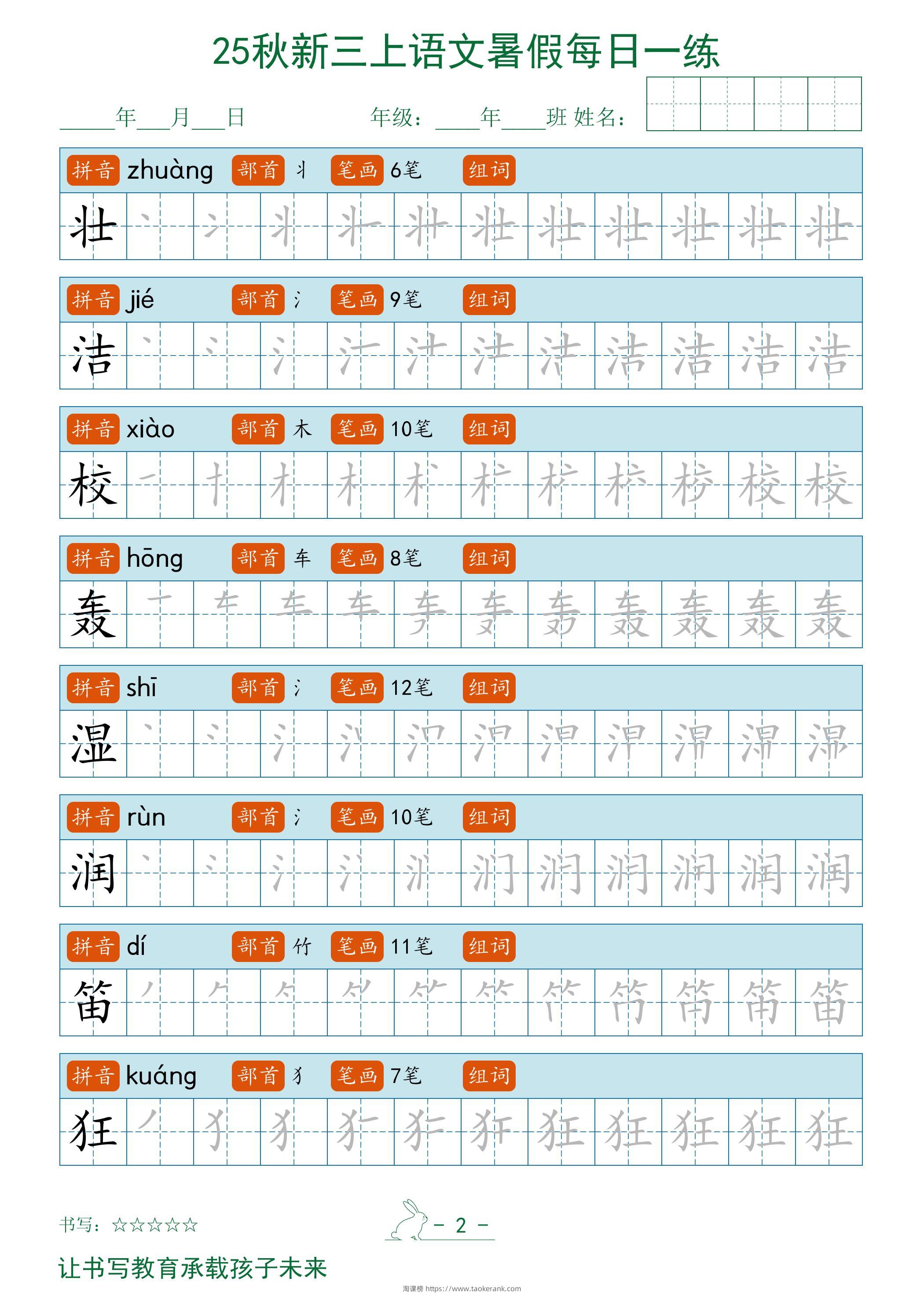 2025秋新三上语文暑假每日一练字帖taoke3个月前发布关注51102025秋新三上语文暑假每日一练字帖此内容为付费资源,请付费后查看9.919.9月VIP免费永久VIP免费立即购买您当前未登录!建议登陆后购买,可保存购买订单格式pdf页数30 页大小2.30 MB付费资源 ——预览已结束,还剩28页未读——开通会员后可免费下载高清完整文档 © 版权声明文章版权归作者所有,未经允许请勿转载。THE END小学语文 喜欢就支持一下吧点赞10收藏