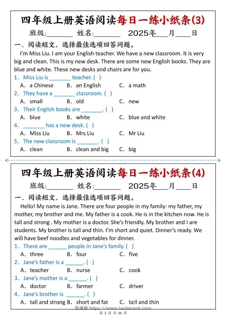 四上英语阅读每日一练小纸条含答案16页taoke3个月前发布关注2411四上英语阅读每日一练小纸条含答案16页此内容为付费资源,请付费后查看9.919.9月VIP免费永久VIP免费立即购买您当前未登录!建议登陆后购买,可保存购买订单格式pdf页数16 页大小928.84 KB付费资源 ——预览已结束,还剩14页未读——开通会员后可免费下载高清完整文档 © 版权声明文章版权归作者所有,未经允许请勿转载。THE END小学英语 喜欢就支持一下吧点赞11收藏