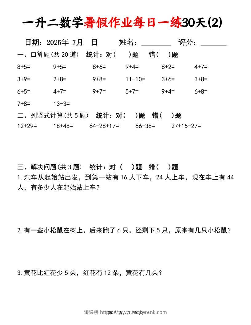 一升二数学暑假作业每日一练30天(口算竖式应用题)30页一下数学taoke3个月前发布关注317一升二数学暑假作业每日一练30天(口算竖式应用题)30页一下数学此内容为付费资源,请付费后查看9.919.9月VIP免费永久VIP免费立即购买您当前未登录!建议登陆后购买,可保存购买订单格式pdf页数30 页大小446.38 KB付费资源 ——预览已结束,还剩28页未读——开通会员后可免费下载高清完整文档 © 版权声明文章版权归作者所有,未经允许请勿转载。THE END小学数学 喜欢就支持一下吧点赞7收藏