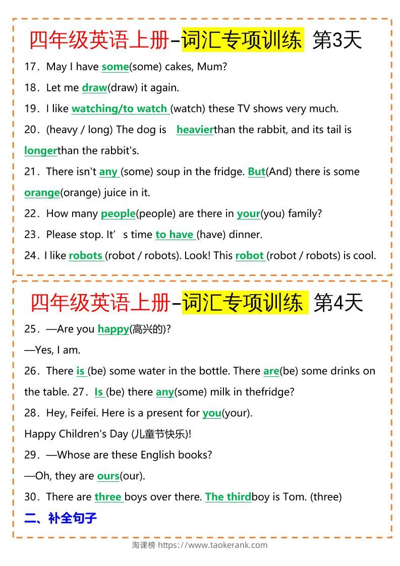 四年级英语上册-词汇专项训练(空白+答案)taoke3个月前发布关注4815四年级英语上册-词汇专项训练(空白+答案)此内容为付费资源,请付费后查看9.919.9月VIP免费永久VIP免费立即购买您当前未登录!建议登陆后购买,可保存购买订单格式pdf页数12 页大小607.91 KB付费资源 ——预览已结束,还剩10页未读——开通会员后可免费下载高清完整文档 © 版权声明文章版权归作者所有,未经允许请勿转载。THE END小学英语 喜欢就支持一下吧点赞15收藏