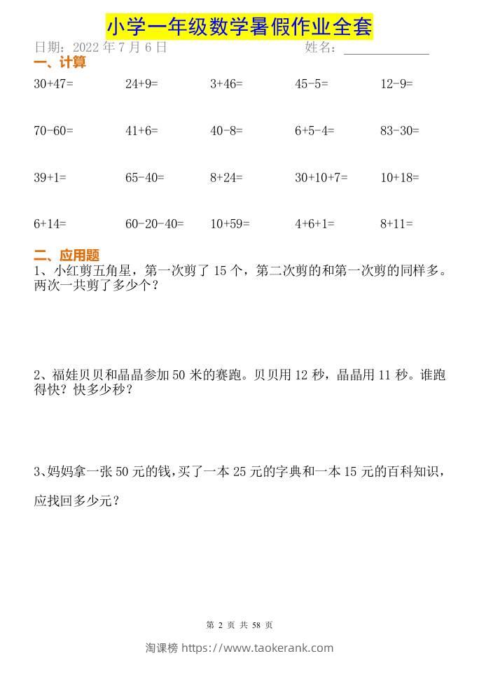 小学一年级下册数学暑假作业全套taoke2个月前发布关注368小学一年级下册数学暑假作业全套此内容为付费资源,请付费后查看9.919.9月VIP免费永久VIP免费立即购买您当前未登录!建议登陆后购买,可保存购买订单格式doc页数58 页大小491.08 KB付费资源 ——预览已结束,还剩56页未读——开通会员后可免费下载高清完整文档 © 版权声明文章版权归作者所有,未经允许请勿转载。THE END小学数学 喜欢就支持一下吧点赞8收藏