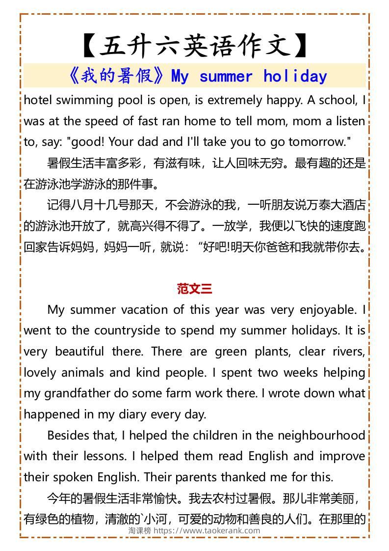 【五升六英语作文】《我的暑假》-六上英语taoke2个月前发布关注4410【五升六英语作文】《我的暑假》-六上英语此内容为付费资源,请付费后查看9.919.9月VIP免费永久VIP免费立即购买您当前未登录!建议登陆后购买,可保存购买订单格式docx页数3 页大小193.38 KB付费资源 ——预览已结束,还剩1页未读——开通会员后可免费下载高清完整文档 © 版权声明文章版权归作者所有,未经允许请勿转载。THE END小学英语 喜欢就支持一下吧点赞10收藏