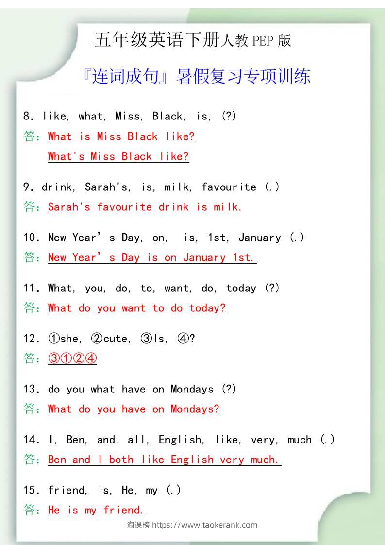 五年级英语下册『连词成句』暑假复习专项训练taoke2个月前发布关注4815五年级英语下册『连词成句』暑假复习专项训练此内容为付费资源,请付费后查看9.919.9月VIP免费永久VIP免费立即购买您当前未登录!建议登陆后购买,可保存购买订单格式docx页数4 页大小71.22 KB付费资源 ——预览已结束,还剩2页未读——开通会员后可免费下载高清完整文档 © 版权声明文章版权归作者所有,未经允许请勿转载。THE END小学英语 喜欢就支持一下吧点赞15收藏