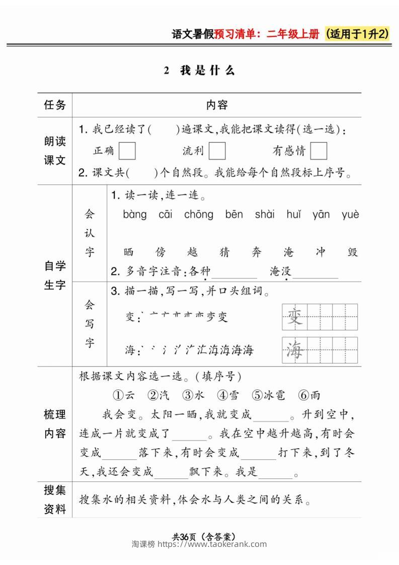 一升二小学语文《暑假预习清单》最新版-二上语文taoke2个月前发布关注439一升二小学语文《暑假预习清单》最新版-二上语文此内容为付费资源,请付费后查看9.919.9月VIP免费永久VIP免费立即购买您当前未登录!建议登陆后购买,可保存购买订单格式pdf页数36 页大小6.83 MB付费资源 ——预览已结束,还剩34页未读——开通会员后可免费下载高清完整文档 © 版权声明文章版权归作者所有,未经允许请勿转载。THE END小学语文 喜欢就支持一下吧点赞9收藏