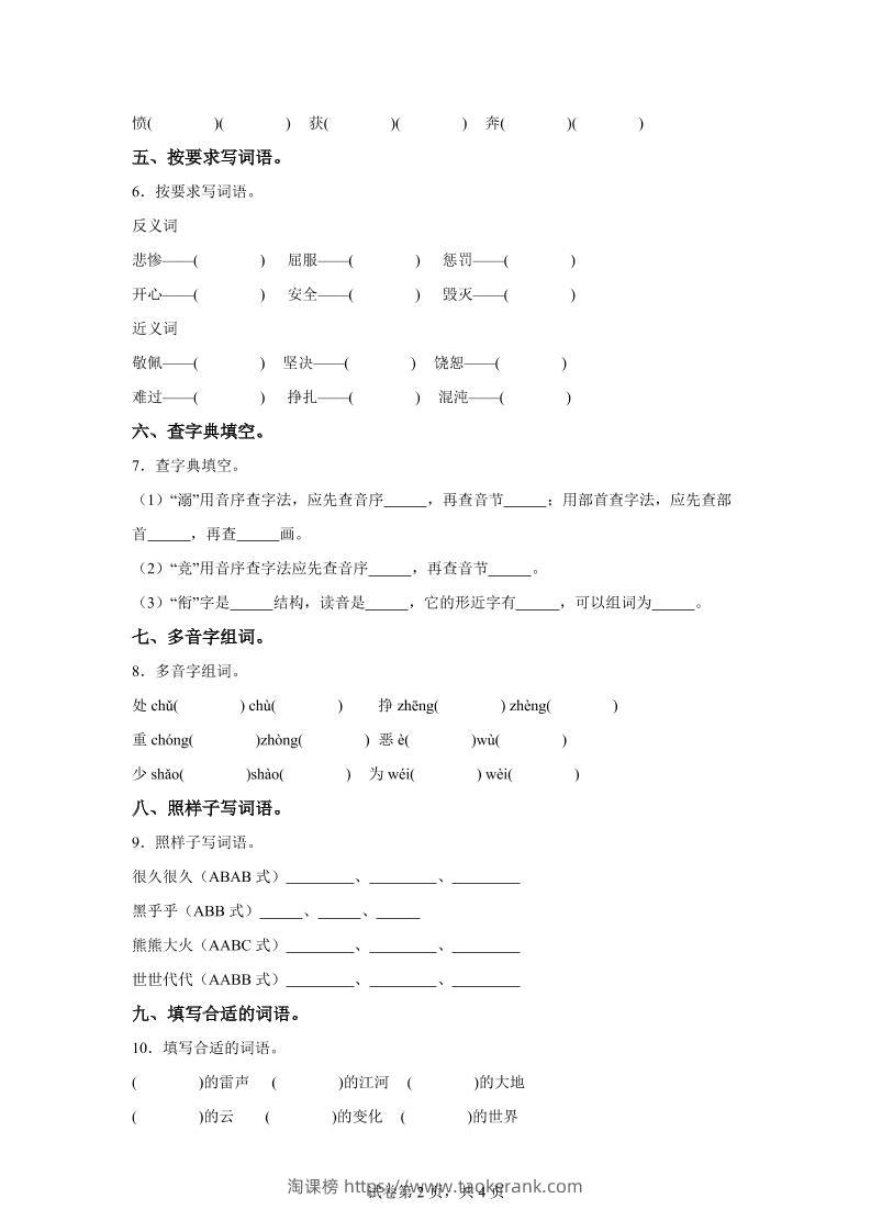 统编版语文四年级上册第四单元字词专项练taoke2个月前发布关注4712统编版语文四年级上册第四单元字词专项练此内容为付费资源,请付费后查看9.919.9月VIP免费永久VIP免费立即购买您当前未登录!建议登陆后购买,可保存购买订单格式pdf页数11 页大小432.23 KB付费资源 ——预览已结束,还剩9页未读——开通会员后可免费下载高清完整文档 © 版权声明文章版权归作者所有,未经允许请勿转载。THE END小学语文 喜欢就支持一下吧点赞12收藏