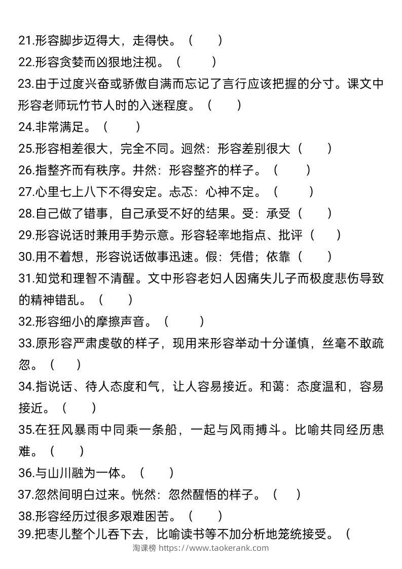 五升六年级语文暑假衔接词语积累-六上语文taoke2个月前发布关注5012五升六年级语文暑假衔接词语积累-六上语文此内容为付费资源,请付费后查看9.919.9月VIP免费永久VIP免费立即购买您当前未登录!建议登陆后购买,可保存购买订单格式pdf页数10 页大小2.79 MB付费资源 ——预览已结束,还剩8页未读——开通会员后可免费下载高清完整文档 © 版权声明文章版权归作者所有,未经允许请勿转载。THE END小学语文 喜欢就支持一下吧点赞12收藏