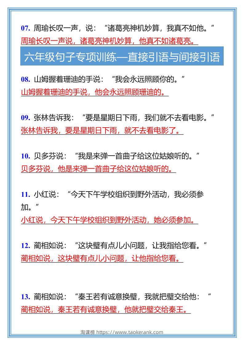 【2025秋新版】六年级句子专项训练-直接引语与间接引语-六上语文taoke2个月前发布关注308【2025秋新版】六年级句子专项训练-直接引语与间接引语-六上语文此内容为付费资源,请付费后查看9.919.9月VIP免费永久VIP免费立即购买您当前未登录!建议登陆后购买,可保存购买订单格式pdf页数3 页大小118.28 KB付费资源 ——预览已结束,还剩1页未读——开通会员后可免费下载高清完整文档 © 版权声明文章版权归作者所有,未经允许请勿转载。THE END小学语文 喜欢就支持一下吧点赞8收藏