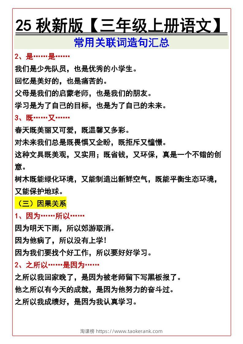 【2025秋新版】【三年级上册语文】常用关联词造句汇总taoke2个月前发布关注4915【2025秋新版】【三年级上册语文】常用关联词造句汇总此内容为付费资源,请付费后查看9.919.9月VIP免费永久VIP免费立即购买您当前未登录!建议登陆后购买,可保存购买订单格式pdf页数4 页大小64.95 KB付费资源 ——预览已结束,还剩2页未读——开通会员后可免费下载高清完整文档 © 版权声明文章版权归作者所有,未经允许请勿转载。THE END小学语文 喜欢就支持一下吧点赞15收藏