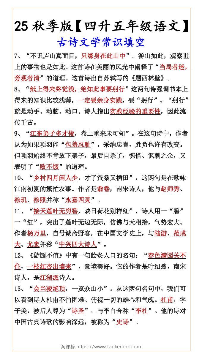 【2025秋新版】【四升五年级语文】古诗文学常识填空-五上语文taoke2个月前发布关注429【2025秋新版】【四升五年级语文】古诗文学常识填空-五上语文此内容为付费资源,请付费后查看9.919.9月VIP免费永久VIP免费立即购买您当前未登录!建议登陆后购买,可保存购买订单格式pdf页数5 页大小164.33 KB付费资源 ——预览已结束,还剩3页未读——开通会员后可免费下载高清完整文档 © 版权声明文章版权归作者所有,未经允许请勿转载。THE END小学语文 喜欢就支持一下吧点赞9收藏