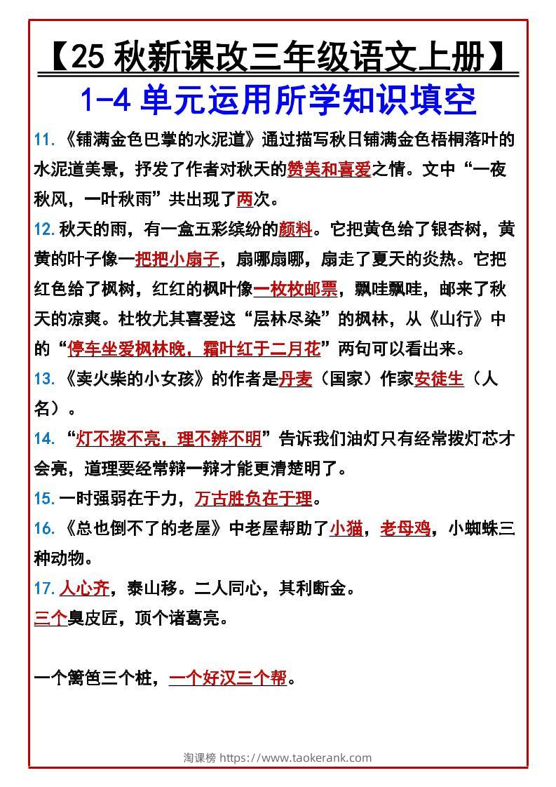 【2025秋新版】【三年级语文上册】1-4单元运用所学知识填空taoke2个月前发布关注5310【2025秋新版】【三年级语文上册】1-4单元运用所学知识填空此内容为付费资源,请付费后查看9.919.9月VIP免费永久VIP免费立即购买您当前未登录!建议登陆后购买,可保存购买订单格式pdf页数3 页大小76.17 KB付费资源 ——预览已结束,还剩1页未读——开通会员后可免费下载高清完整文档 © 版权声明文章版权归作者所有,未经允许请勿转载。THE END小学语文 喜欢就支持一下吧点赞10收藏