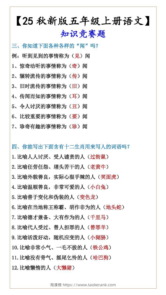 【2025秋新版】【五年级上册语文】知识竞赛题taoke2个月前发布关注358【2025秋新版】【五年级上册语文】知识竞赛题此内容为付费资源,请付费后查看9.919.9月VIP免费永久VIP免费立即购买您当前未登录!建议登陆后购买,可保存购买订单格式pdf页数4 页大小126.07 KB付费资源 ——预览已结束,还剩2页未读——开通会员后可免费下载高清完整文档 © 版权声明文章版权归作者所有,未经允许请勿转载。THE END小学语文 喜欢就支持一下吧点赞8收藏