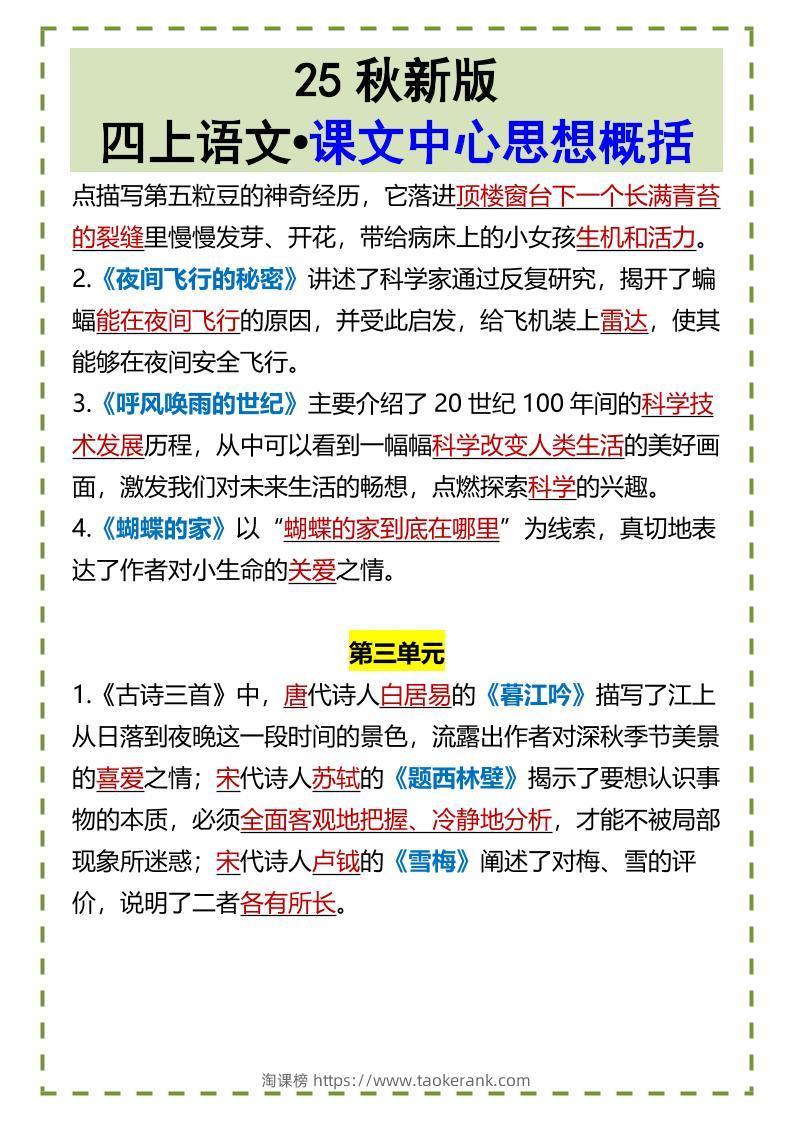 【2025秋新版】四上语文•课文中心思想概括taoke2个月前发布关注5313【2025秋新版】四上语文•课文中心思想概括此内容为付费资源,请付费后查看9.919.9月VIP免费永久VIP免费立即购买您当前未登录!建议登陆后购买,可保存购买订单格式pdf页数6 页大小406.86 KB付费资源 ——预览已结束,还剩4页未读——开通会员后可免费下载高清完整文档 © 版权声明文章版权归作者所有,未经允许请勿转载。THE END小学语文 喜欢就支持一下吧点赞13收藏