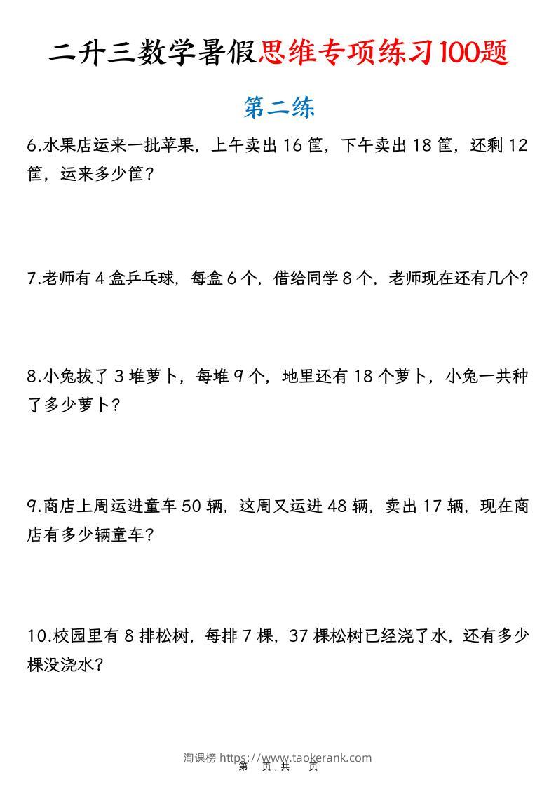 二升三数学暑假思维专项练习100题(含答案26页)-三上数学taoke1个月前发布关注527二升三数学暑假思维专项练习100题(含答案26页)-三上数学此内容为付费资源,请付费后查看9.919.9月VIP免费永久VIP免费立即购买您当前未登录!建议登陆后购买,可保存购买订单格式pdf页数26 页大小273.88 KB付费资源 ——预览已结束,还剩24页未读——开通会员后可免费下载高清完整文档 © 版权声明文章版权归作者所有,未经允许请勿转载。THE END小学数学 喜欢就支持一下吧点赞7收藏
