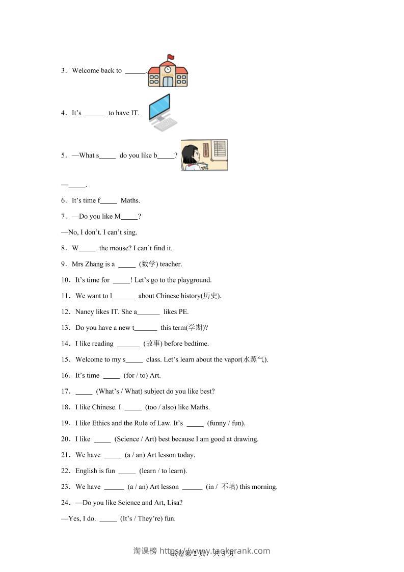 2025-2026学年译林版(三起)(2024)英语四年级上册Unit1Ourschoolsubjects词汇(单元测试)taoke1个月前发布关注39122025-2026学年译林版(三起)(2024)英语四年级上册Unit1Ourschoolsubjects词汇(单元测试)此内容为付费资源,请付费后查看9.919.9月VIP免费永久VIP免费立即购买您当前未登录!建议登陆后购买,可保存购买订单格式pdf页数9 页大小394.10 KB付费资源 ——预览已结束,还剩7页未读——开通会员后可免费下载高清完整文档 © 版权声明文章版权归作者所有,未经允许请勿转载。THE END小学英语 喜欢就支持一下吧点赞12收藏