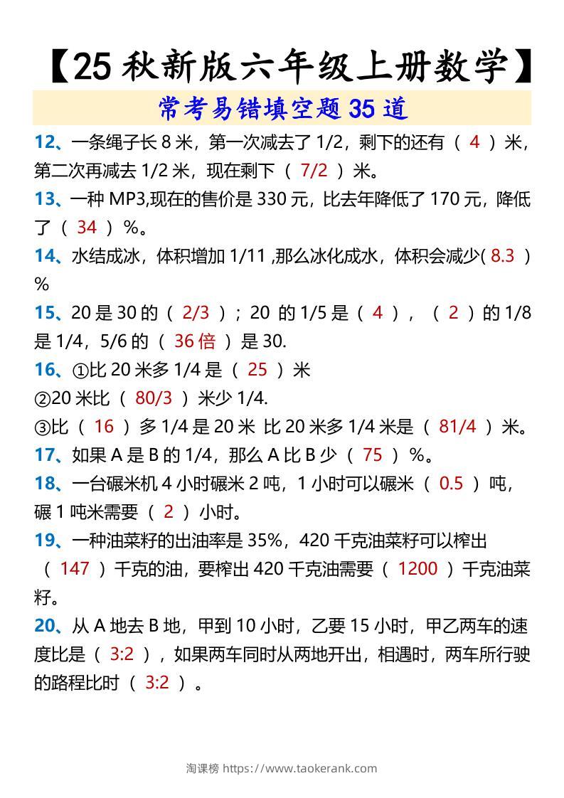 【2025秋新版】【六年级上册数学】常考易错填空题35道taoke1个月前发布关注4811【2025秋新版】【六年级上册数学】常考易错填空题35道此内容为付费资源,请付费后查看9.919.9月VIP免费永久VIP免费立即购买您当前未登录!建议登陆后购买,可保存购买订单格式pdf页数4 页大小126.27 KB付费资源 ——预览已结束,还剩2页未读——开通会员后可免费下载高清完整文档 © 版权声明文章版权归作者所有,未经允许请勿转载。THE END小学数学 喜欢就支持一下吧点赞11收藏