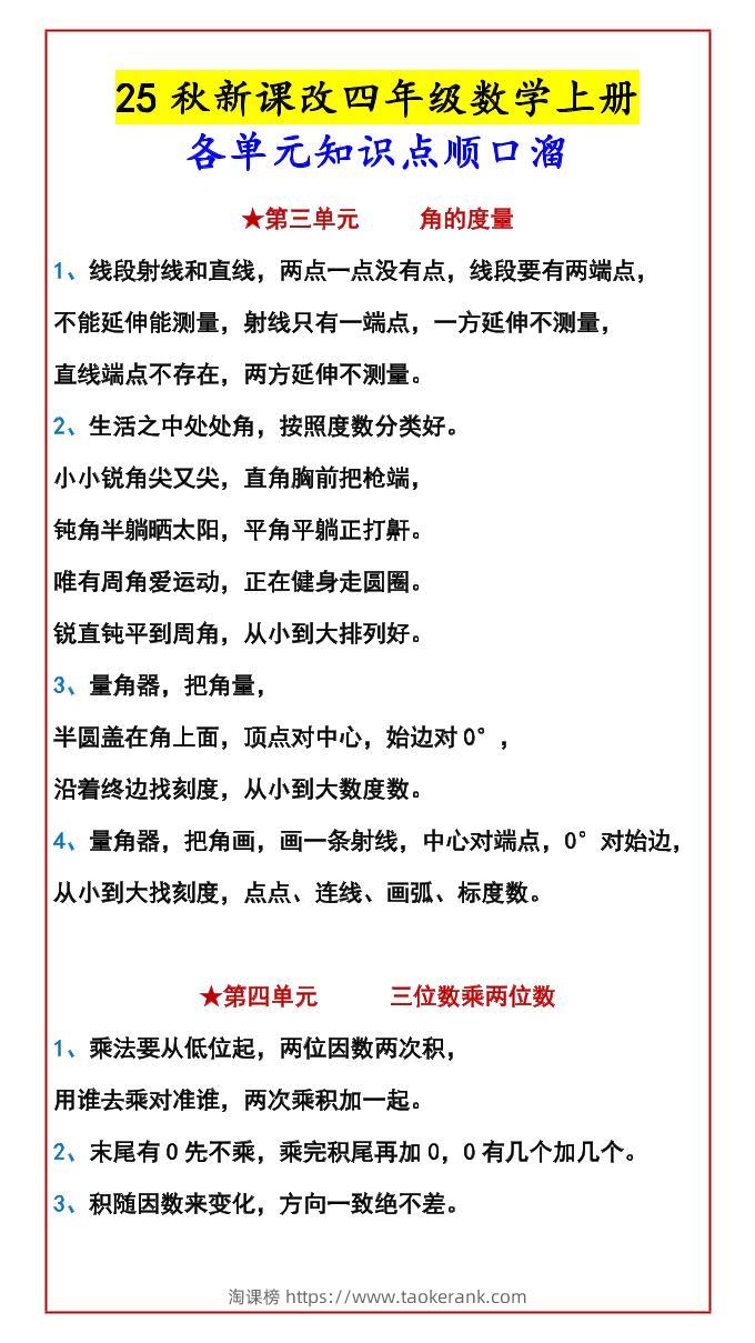 【2025秋新版】四年级数学上册各单元知识点顺口溜taoke1个月前发布关注2715【2025秋新版】四年级数学上册各单元知识点顺口溜此内容为付费资源,请付费后查看9.919.9月VIP免费永久VIP免费立即购买您当前未登录!建议登陆后购买,可保存购买订单格式pdf页数4 页大小104.98 KB付费资源 ——预览已结束,还剩2页未读——开通会员后可免费下载高清完整文档 © 版权声明文章版权归作者所有,未经允许请勿转载。THE END小学数学 喜欢就支持一下吧点赞15收藏