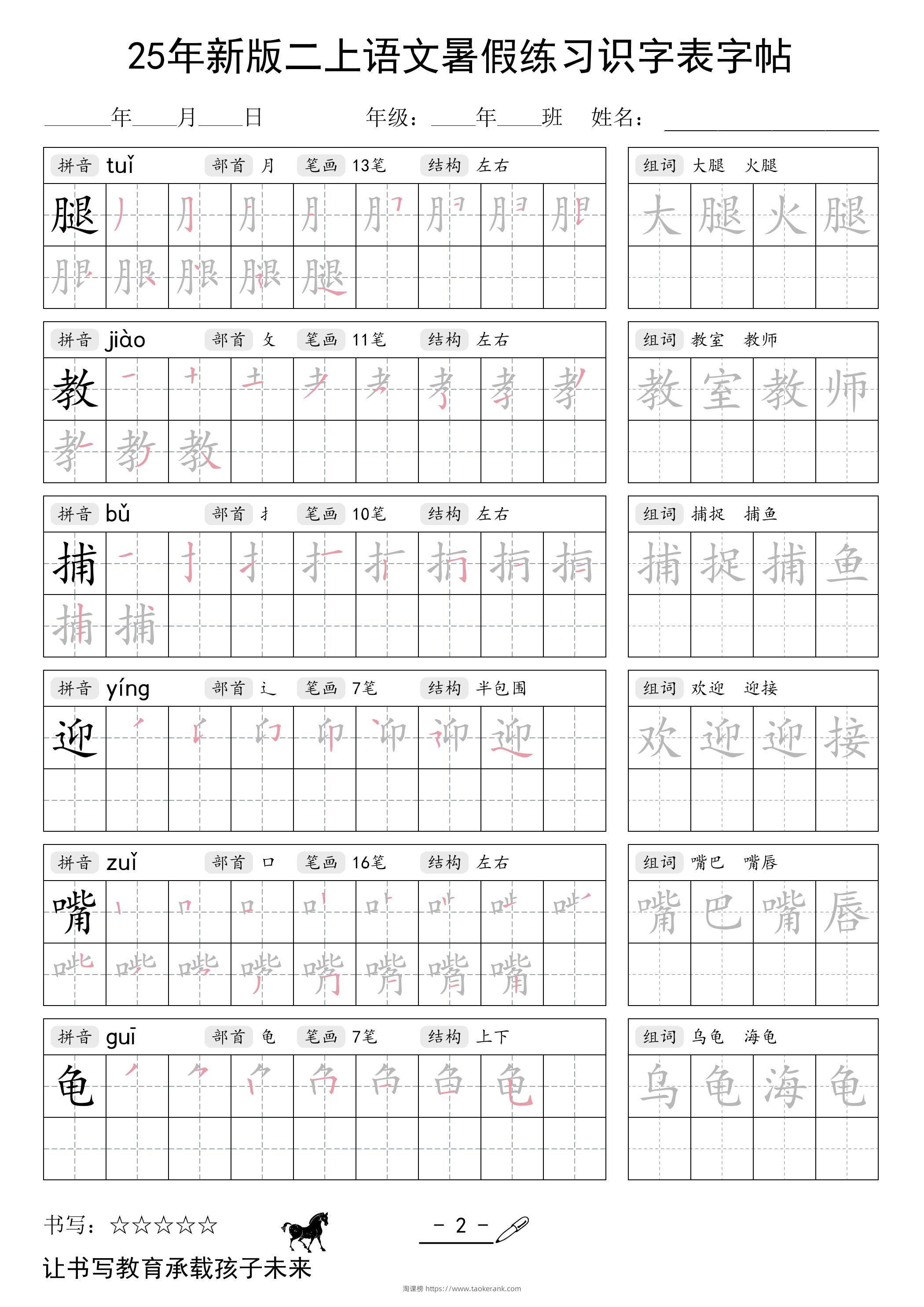 25年新版二上语文暑假练习识字表字帖taoke1个月前发布关注43625年新版二上语文暑假练习识字表字帖此内容为付费资源,请付费后查看9.919.9月VIP免费永久VIP免费立即购买您当前未登录!建议登陆后购买,可保存购买订单格式pdf页数80 页大小6.67 MB付费资源 ——预览已结束,还剩78页未读——开通会员后可免费下载高清完整文档 © 版权声明文章版权归作者所有,未经允许请勿转载。THE END小学语文 喜欢就支持一下吧点赞6收藏
