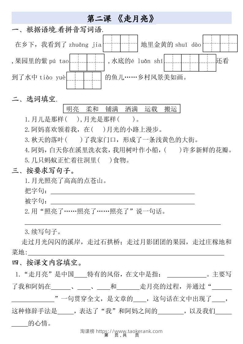四上语文全册(1-27课)一课一练34页taoke1个月前发布关注4710四上语文全册(1-27课)一课一练34页此内容为付费资源,请付费后查看9.919.9月VIP免费永久VIP免费立即购买您当前未登录!建议登陆后购买,可保存购买订单格式pdf页数34 页大小699.81 KB付费资源 ——预览已结束,还剩32页未读——开通会员后可免费下载高清完整文档 © 版权声明文章版权归作者所有,未经允许请勿转载。THE END小学语文 喜欢就支持一下吧点赞10收藏