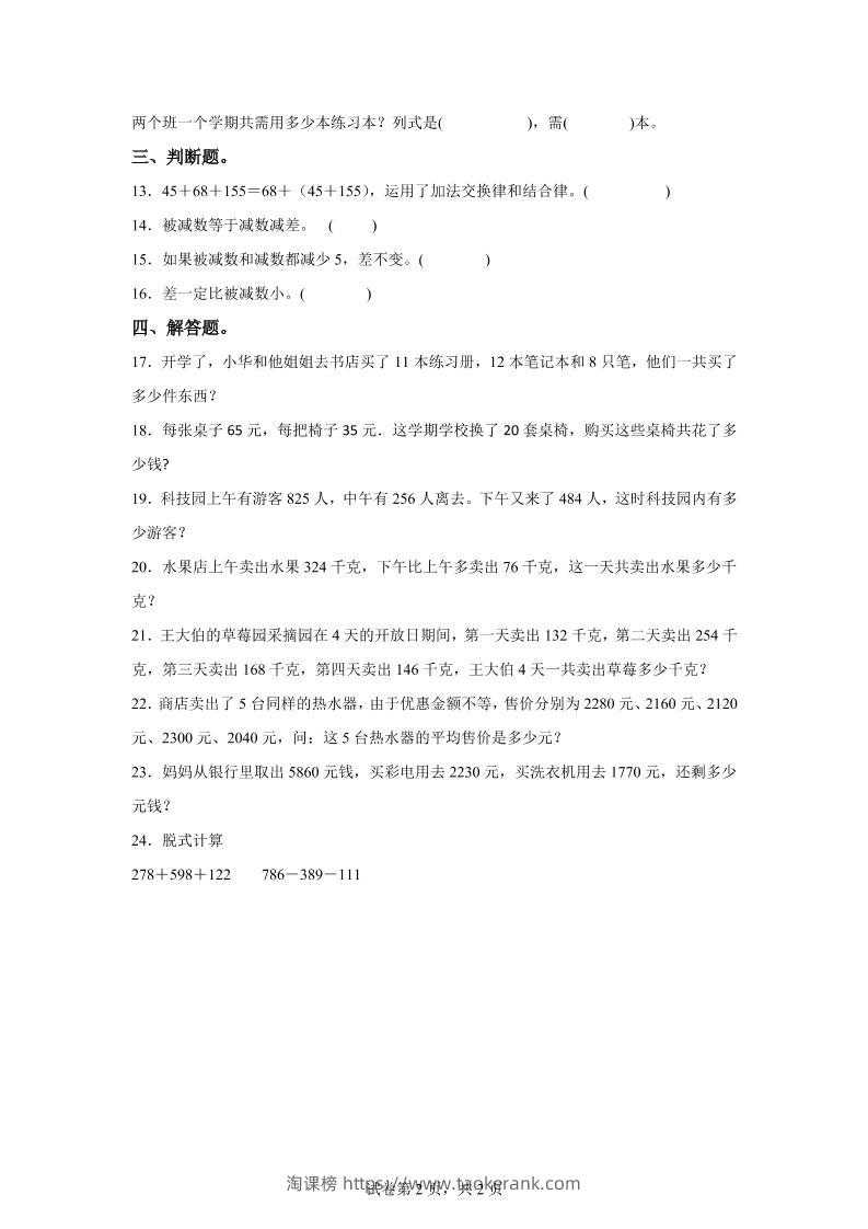 西师大版数学四年级上册第二单元《加减法的关系和加法运算律》单元测试卷taoke1个月前发布关注3911西师大版数学四年级上册第二单元《加减法的关系和加法运算律》单元测试卷此内容为付费资源,请付费后查看9.919.9月VIP免费永久VIP免费立即购买您当前未登录!建议登陆后购买,可保存购买订单格式pdf页数8 页大小119.14 KB付费资源 ——预览已结束,还剩6页未读——开通会员后可免费下载高清完整文档 © 版权声明文章版权归作者所有,未经允许请勿转载。THE END小学数学 喜欢就支持一下吧点赞11收藏