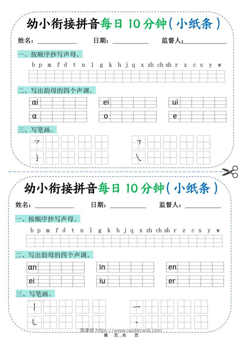 幼小衔接拼音每日一练10分钟20天(拼音声调笔画)10页taoke1个月前发布关注4114幼小衔接拼音每日一练10分钟20天(拼音声调笔画)10页此内容为付费资源,请付费后查看9.919.9月VIP免费永久VIP免费立即购买您当前未登录!建议登陆后购买,可保存购买订单格式pdf页数10 页大小3.73 MB付费资源 ——预览已结束,还剩8页未读——开通会员后可免费下载高清完整文档 © 版权声明文章版权归作者所有,未经允许请勿转载。THE END幼升小 喜欢就支持一下吧点赞14收藏
