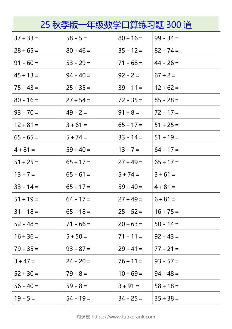 【2025秋新版】一年级数学口算练习题300道-一上数学taoke1个月前发布关注4414【2025秋新版】一年级数学口算练习题300道-一上数学此内容为付费资源,请付费后查看9.919.9月VIP免费永久VIP免费立即购买您当前未登录!建议登陆后购买,可保存购买订单格式pdf页数5 页大小58.92 KB付费资源 ——预览已结束,还剩3页未读——开通会员后可免费下载高清完整文档 © 版权声明文章版权归作者所有,未经允许请勿转载。THE END小学数学 喜欢就支持一下吧点赞14收藏