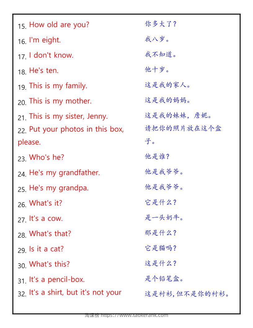 【2025秋新版】三年级英语上册《重点句子》中英文对照taoke1个月前发布关注405【2025秋新版】三年级英语上册《重点句子》中英文对照此内容为付费资源,请付费后查看9.919.9月VIP免费永久VIP免费立即购买您当前未登录!建议登陆后购买,可保存购买订单格式pdf页数4 页大小66.34 KB付费资源 ——预览已结束,还剩2页未读——开通会员后可免费下载高清完整文档 © 版权声明文章版权归作者所有,未经允许请勿转载。THE END小学英语 喜欢就支持一下吧点赞5收藏