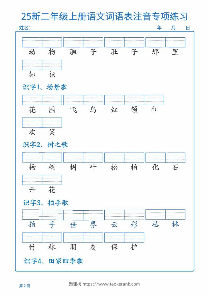 25新二上语文词语表注音专项练习(含答案18页)taoke35天前发布关注47625新二上语文词语表注音专项练习(含答案18页)此内容为付费资源,请付费后查看9.919.9月VIP免费永久VIP免费立即购买您当前未登录!建议登陆后购买,可保存购买订单格式pdf页数18 页大小1.58 MB付费资源 ——预览已结束,还剩16页未读——开通会员后可免费下载高清完整文档 © 版权声明文章版权归作者所有,未经允许请勿转载。THE END小学语文 喜欢就支持一下吧点赞6收藏