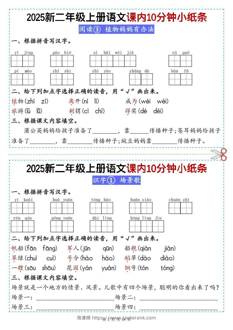 二上丨语文课内10分钟小纸条(无答案,25新)taoke2个月前发布关注5211二上丨语文课内10分钟小纸条(无答案,25新)此内容为付费资源,请付费后查看9.919.9月VIP免费永久VIP免费立即购买您当前未登录!建议登陆后购买,可保存购买订单格式pdf页数14 页大小5.60 MB付费资源 ——预览已结束,还剩12页未读——开通会员后可免费下载高清完整文档 © 版权声明文章版权归作者所有,未经允许请勿转载。THE END小学语文 喜欢就支持一下吧点赞11收藏