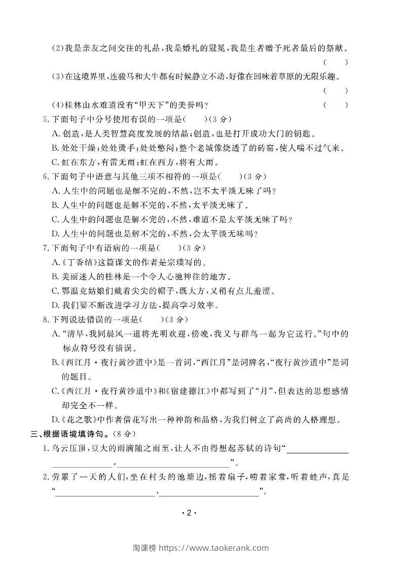 六上语文全册1-8单元测试卷(含答案48页)taoke31天前发布关注3714六上语文全册1-8单元测试卷(含答案48页)此内容为付费资源,请付费后查看9.919.9月VIP免费永久VIP免费立即购买您当前未登录!建议登陆后购买,可保存购买订单格式pdf页数48 页大小14.61 MB付费资源 ——预览已结束,还剩46页未读——开通会员后可免费下载高清完整文档 © 版权声明文章版权归作者所有,未经允许请勿转载。THE END小学语文 喜欢就支持一下吧点赞14收藏