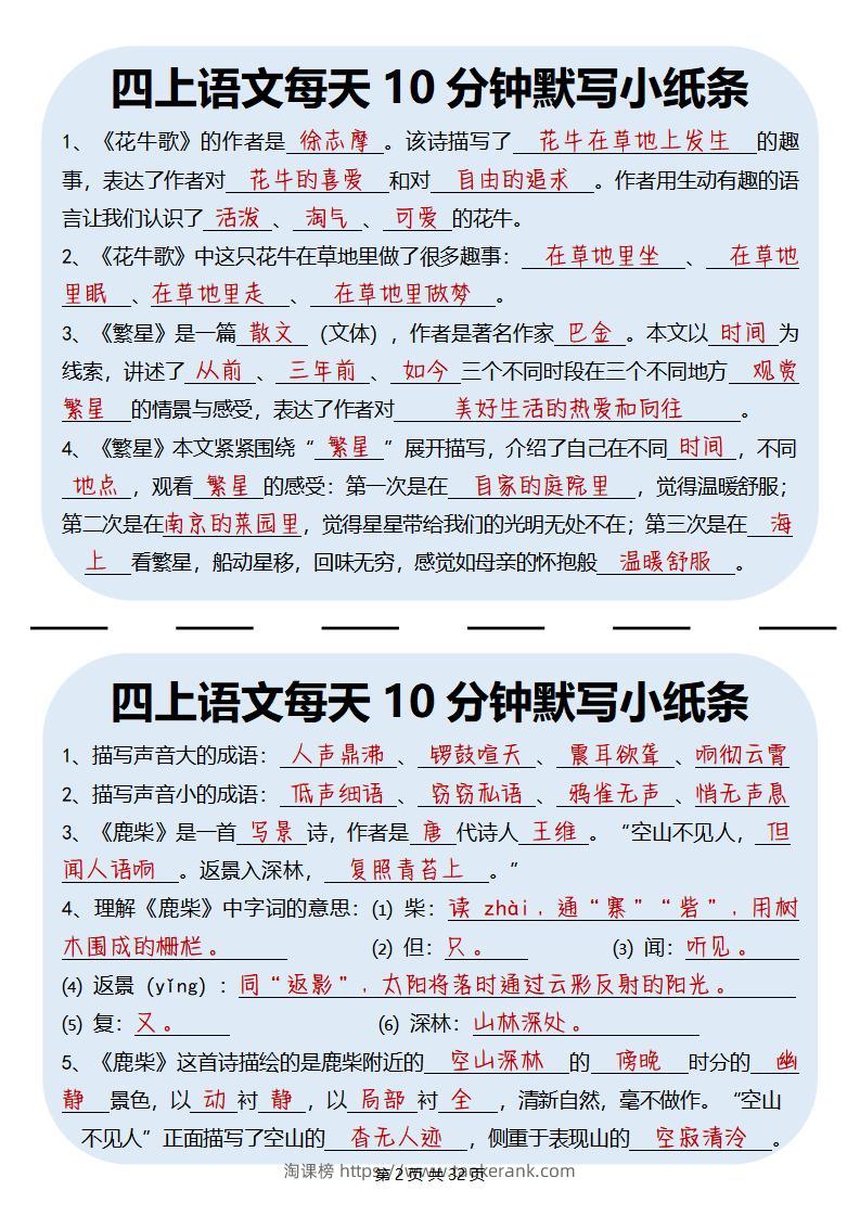 四上丨语文每天10分钟默写小纸条taoke29天前发布关注2811四上丨语文每天10分钟默写小纸条此内容为付费资源,请付费后查看9.919.9月VIP免费永久VIP免费立即购买您当前未登录!建议登陆后购买,可保存购买订单格式pdf页数32 页大小2.85 MB付费资源 ——预览已结束,还剩30页未读——开通会员后可免费下载高清完整文档 © 版权声明文章版权归作者所有,未经允许请勿转载。THE END小学语文 喜欢就支持一下吧点赞11收藏