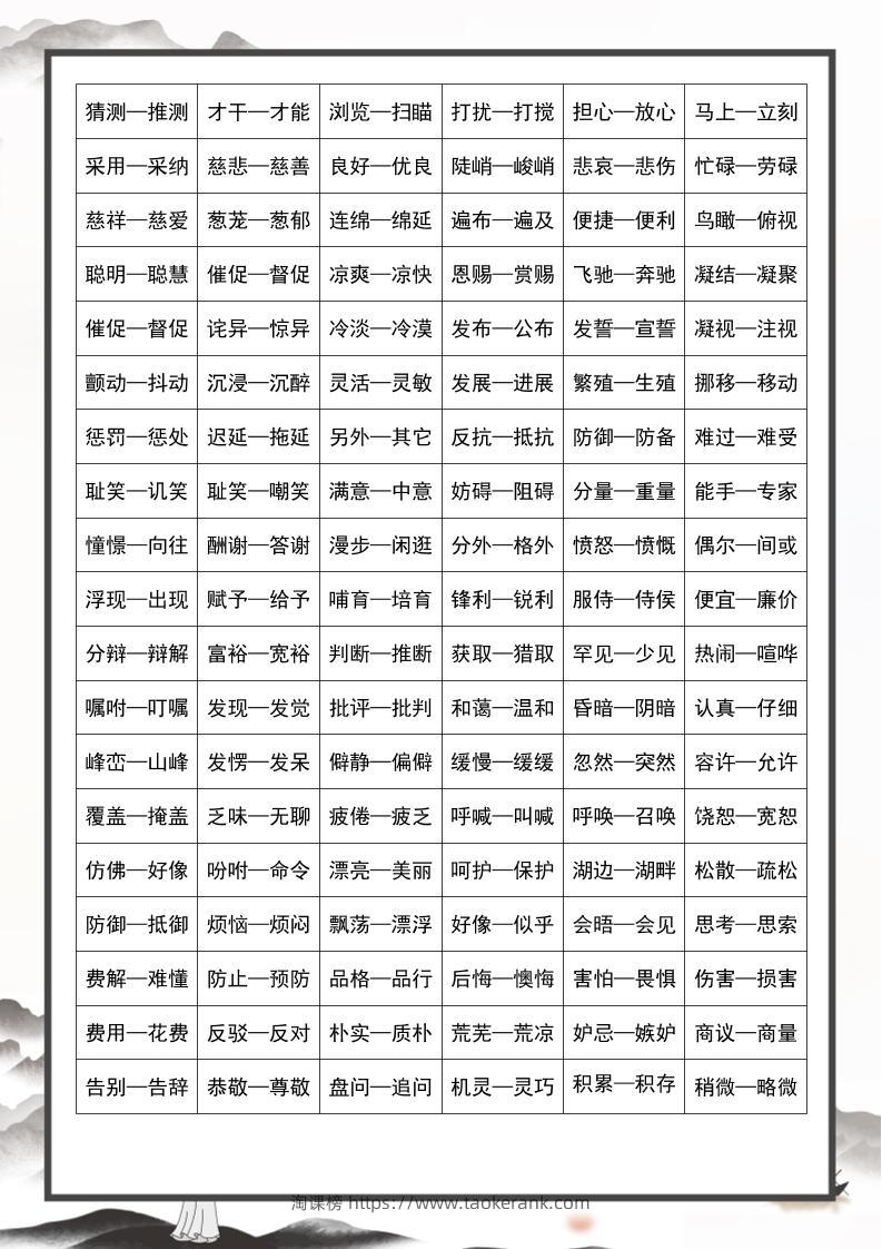 三上语文近义词和反义词汇总taoke26天前发布关注465三上语文近义词和反义词汇总此内容为付费资源,请付费后查看9.919.9月VIP免费永久VIP免费立即购买您当前未登录!建议登陆后购买,可保存购买订单格式pdf页数8 页大小438.49 KB付费资源 ——预览已结束,还剩6页未读——开通会员后可免费下载高清完整文档 © 版权声明文章版权归作者所有,未经允许请勿转载。THE END小学语文 喜欢就支持一下吧点赞5收藏
