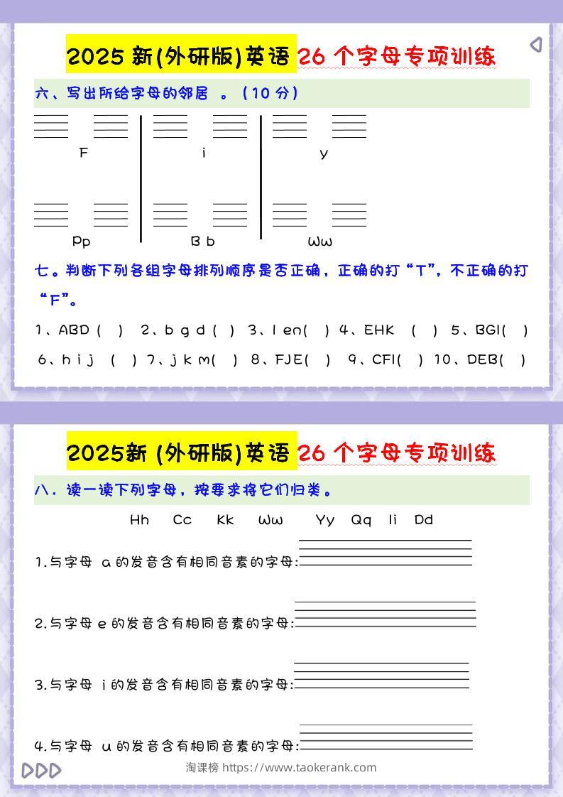 三上英语-2025新(外研版)英语26个字母专项训练taoke2个月前发布关注9311三上英语-2025新(外研版)英语26个字母专项训练此内容为付费资源,请付费后查看9.919.9月VIP免费永久VIP免费立即购买您当前未登录!建议登陆后购买,可保存购买订单格式pdf页数3 页大小197.85 KB付费资源 ——预览已结束,还剩1页未读——开通会员后可免费下载高清完整文档 © 版权声明文章版权归作者所有,未经允许请勿转载。THE END小学英语 喜欢就支持一下吧点赞11收藏