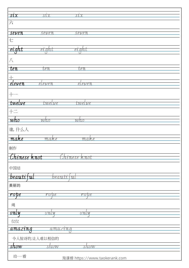 三上英语-(外研三起)Unit4Funwithmunbers单词书写练习taoke23天前发布关注357三上英语-(外研三起)Unit4Funwithmunbers单词书写练习此内容为付费资源,请付费后查看9.919.9月VIP免费永久VIP免费立即购买您当前未登录!建议登陆后购买,可保存购买订单格式pdf页数3 页大小198.79 KB付费资源 ——预览已结束,还剩1页未读——开通会员后可免费下载高清完整文档 © 版权声明文章版权归作者所有,未经允许请勿转载。THE END小学英语 喜欢就支持一下吧点赞7收藏