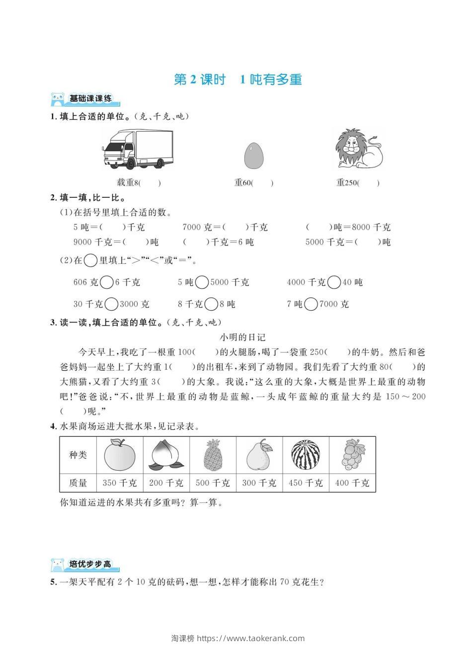三上数学千克、克、吨(同步练习)taoke17天前发布关注268三上数学千克、克、吨(同步练习)此内容为付费资源,请付费后查看9.919.9月VIP免费永久VIP免费立即购买您当前未登录!建议登陆后购买,可保存购买订单格式pdf页数4 页大小1.05 MB付费资源 ——预览已结束,还剩2页未读——开通会员后可免费下载高清完整文档 © 版权声明文章版权归作者所有,未经允许请勿转载。THE END小学数学 喜欢就支持一下吧点赞8收藏