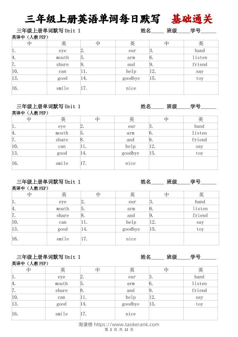 三年级上册英语单词每日默写基础通关taoke16天前发布关注356三年级上册英语单词每日默写基础通关此内容为付费资源,请付费后查看9.919.9月VIP免费永久VIP免费立即购买您当前未登录!建议登陆后购买,可保存购买订单格式pdf页数12 页大小252.81 KB付费资源 ——预览已结束,还剩10页未读——开通会员后可免费下载高清完整文档 © 版权声明文章版权归作者所有,未经允许请勿转载。THE END小学英语 喜欢就支持一下吧点赞6收藏