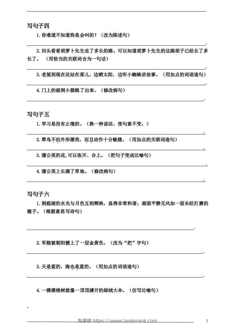 三上语文-要求写句子(必考题)taoke13天前发布关注448三上语文-要求写句子(必考题)此内容为付费资源,请付费后查看9.919.9月VIP免费永久VIP免费立即购买您当前未登录!建议登陆后购买,可保存购买订单格式doc页数5 页大小48.67 KB付费资源 ——预览已结束,还剩3页未读——开通会员后可免费下载高清完整文档 © 版权声明文章版权归作者所有,未经允许请勿转载。THE END小学语文 喜欢就支持一下吧点赞8收藏