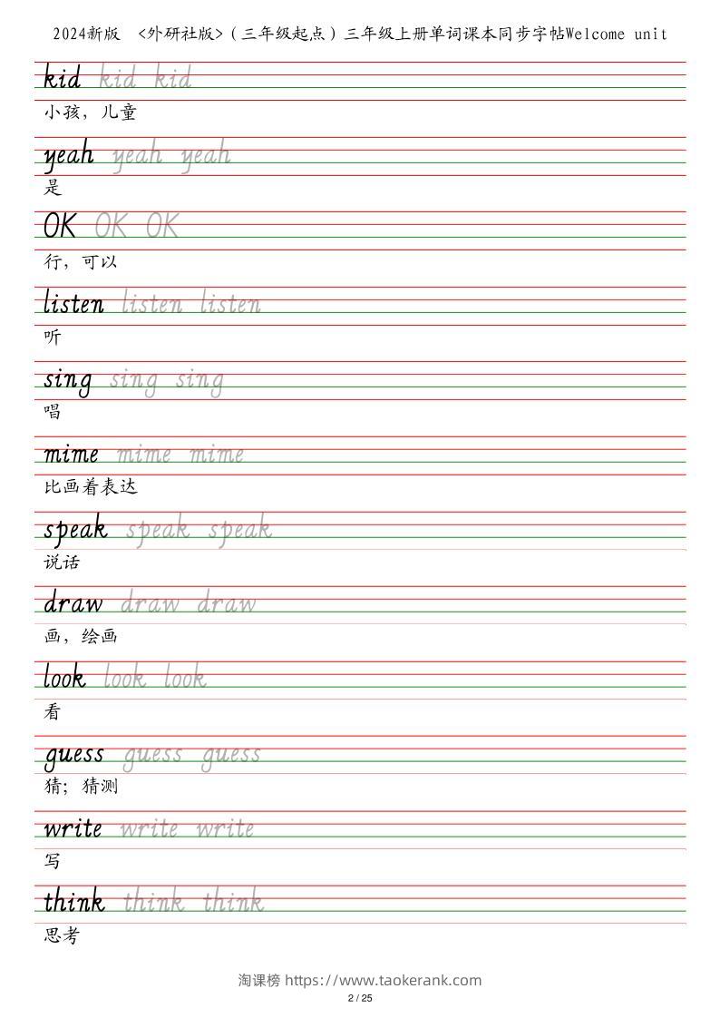 25秋外研社版(三年级起点)三年级上册英语单词课本同步字帖taoke9天前发布关注261025秋外研社版(三年级起点)三年级上册英语单词课本同步字帖此内容为付费资源,请付费后查看9.919.9月VIP免费永久VIP免费立即购买您当前未登录!建议登陆后购买,可保存购买订单格式pdf页数25 页大小917.83 KB付费资源 ——预览已结束,还剩23页未读——开通会员后可免费下载高清完整文档 © 版权声明文章版权归作者所有,未经允许请勿转载。THE END小学英语 喜欢就支持一下吧点赞10收藏